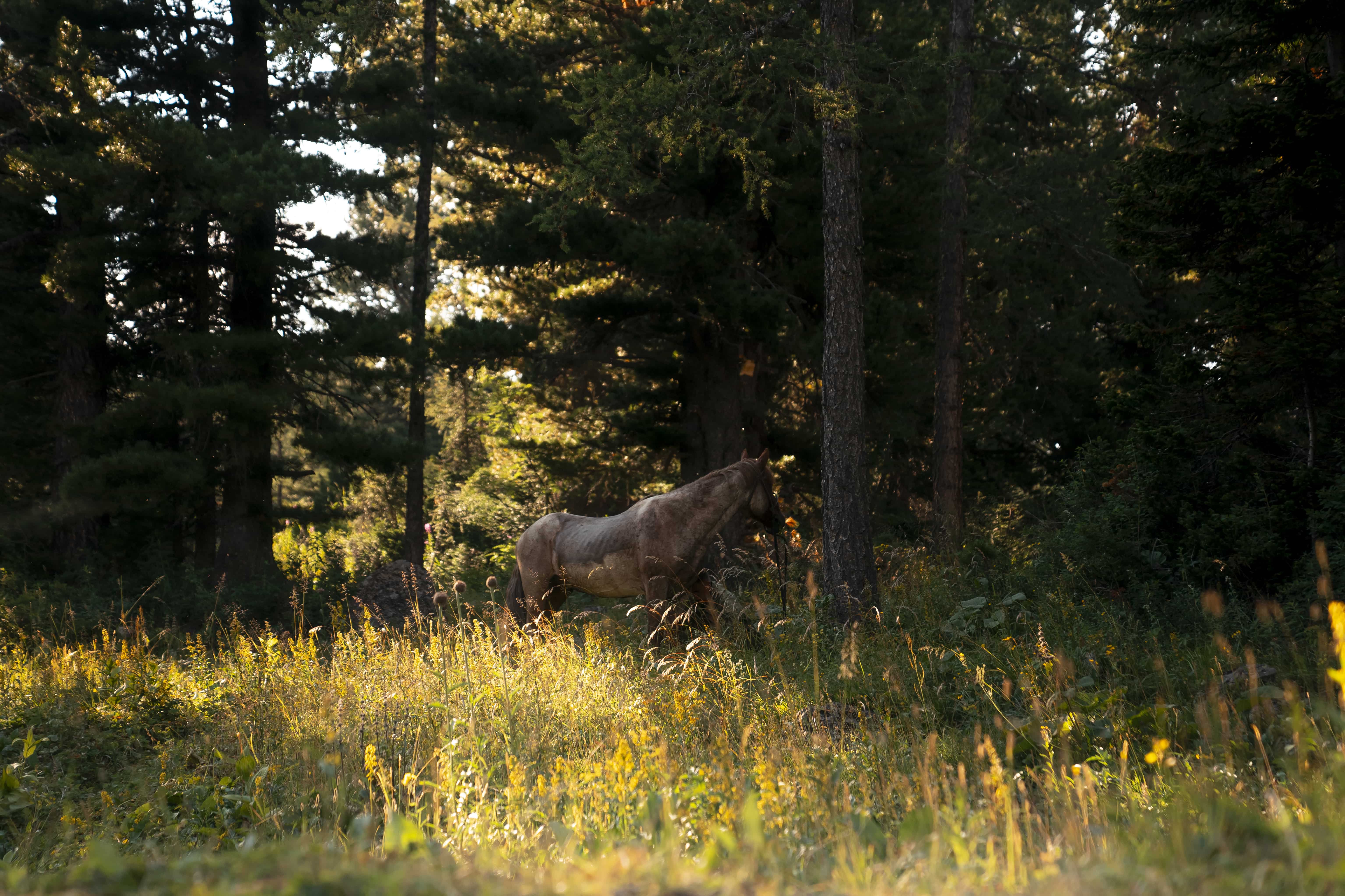 После завтрака распределяем продукты питания между участниками похода, пакуем их, а также личные вещи и снаряжение в арчимаки (переметные сумы) и драйбеги (непромокаемые чехлы).Гид проводит инструктаж по технике безопасности и правилам управления лошадью, после чего конюхи распределяют лошадей между туристами. Группу ждет небольшой - около 4 часов - и несложный конный переход к первой точке на маршруте. Сначала тропа идет вдоль Катуни, затем уходит в сторону и петляет вдоль подножия горы Кабануха. Цель наша - озеро Крутинское, к нему ведет довольно крутой подъем, но в конце путников ждет живописный горный водоем. Как и в большинстве горных озер, здесь бирюзовая чистейшая вода и даже можно порыбачить. На берегу озера разбиваем лагерь.